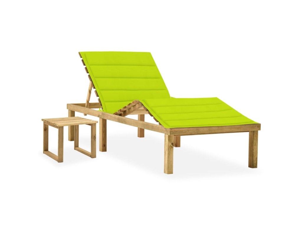 Zahradní lehátko je zhotovené z impregnované borovice, takže výborně odolává klimatickým vlivům, má dlouhou životnost a dá se snadno čistit vlhkým hadříkem. Opěradlo a podnožku si můžete nastavit dle vlastní potřeby, abyste se mohli co nejpohodlněji uvelebit. Stolek lze využít pro odložení mobilu, brýlí, nápojů a dalších předmětů, které budete mít stále na dosah. Poduška, jež je také součástí balení, nemá jen praktickou funkci, ale je zároveň dekorativním doplňkem.