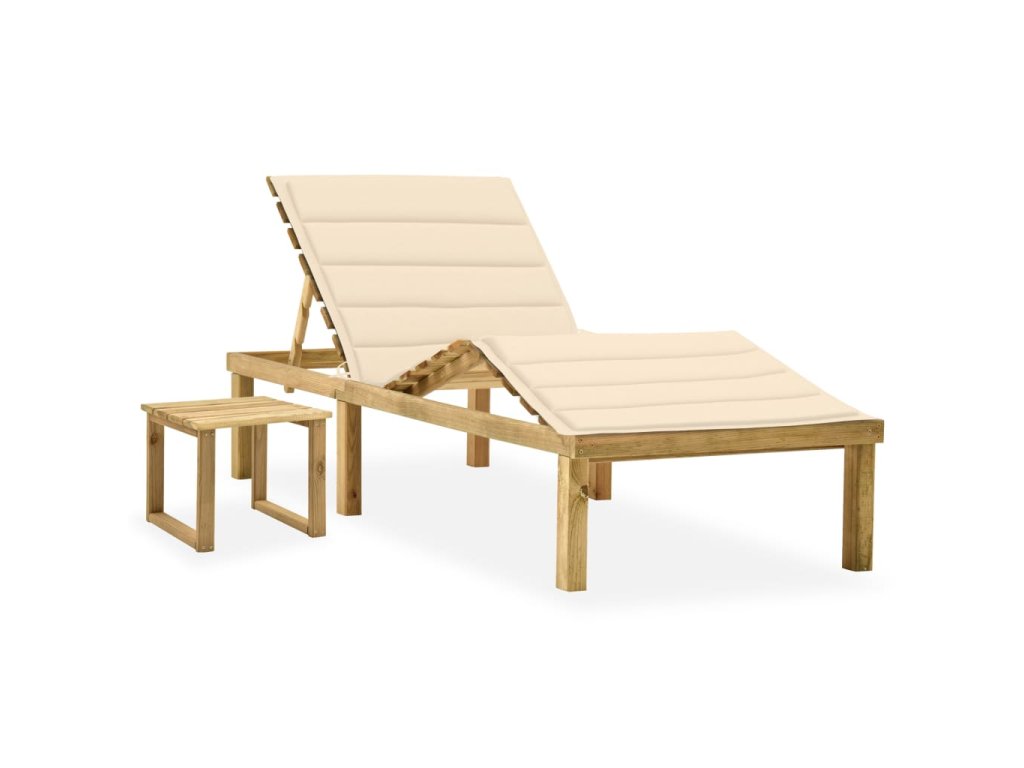 Zahradní lehátko je zhotovené z impregnované borovice, takže výborně odolává klimatickým vlivům, má dlouhou životnost a dá se snadno čistit vlhkým hadříkem. Opěradlo a podnožku si můžete nastavit dle vlastní potřeby, abyste se mohli co nejpohodlněji uvelebit. Stolek lze využít pro odložení mobilu, brýlí, nápojů a dalších předmětů, které budete mít stále na dosah. Poduška, jež je také součástí balení, nemá jen praktickou funkci, ale je zároveň dekorativním doplňkem.
