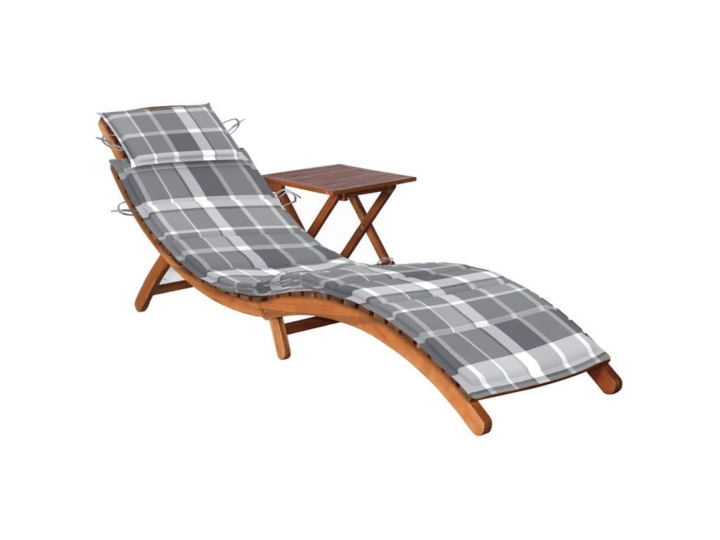 Zahradní lehátko i stolek jsou vyrobené z masivního akáciového dřeva, takže jsou odolné a stabilní. Lehátko má navíc ergonomický tvar, abyste se mohli hezky natáhnout a zcela se uvolnit. Oba kusy nábytku lze složit a uklidit, nemusí vám tedy zbytečně překážet, když je zrovna nebudete používat. Poduška s podhlavníkem vám při odpočinku poskytne dodatečné pohodlí. Každá poduška je opatřená šesti páry šňůrek, abyste ji mohli pevně přivázat k lehátku.