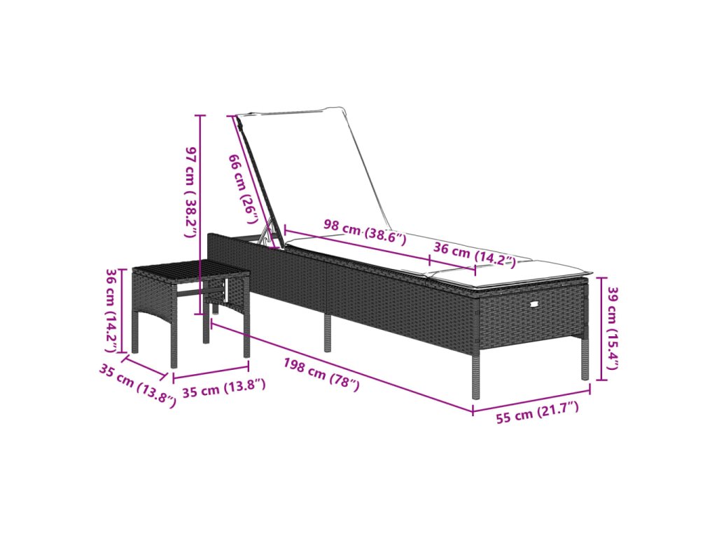 - Nastavitelné opěradlo: Tento venkovní nábytek má opěradlo s 5 nastavitelnými polohami, které vám umožní snadno najít nejpohodlnější a nejvhodnější polohu pro odpočinek.