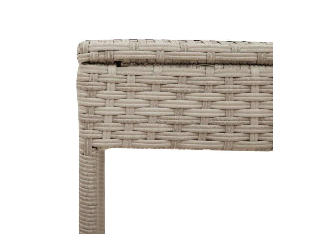 - Odolný materiál: PE ratan neboli polyratan je pevný syntetický materiál s nízkými nároky na údržbu, který vypadá jako přírodní ratan. Je lehký, snadno se čistí a běžně se používá pro venkovní nábytek díky své dlouhé životnosti a odolnosti vůči povětrnostním vlivům.