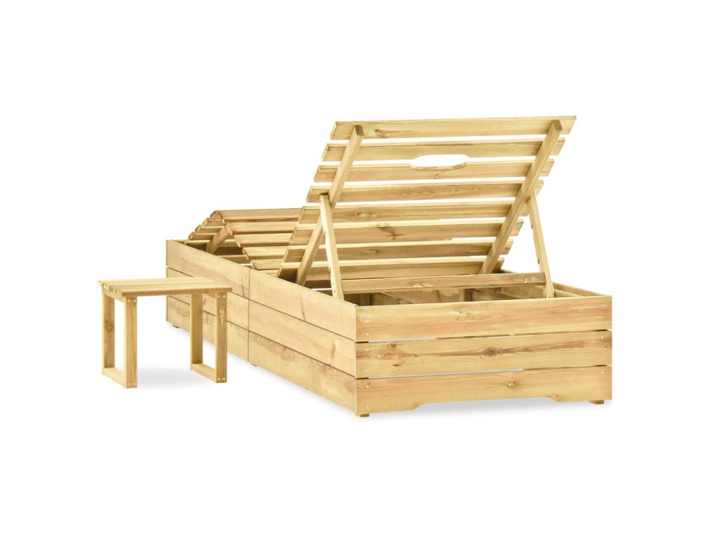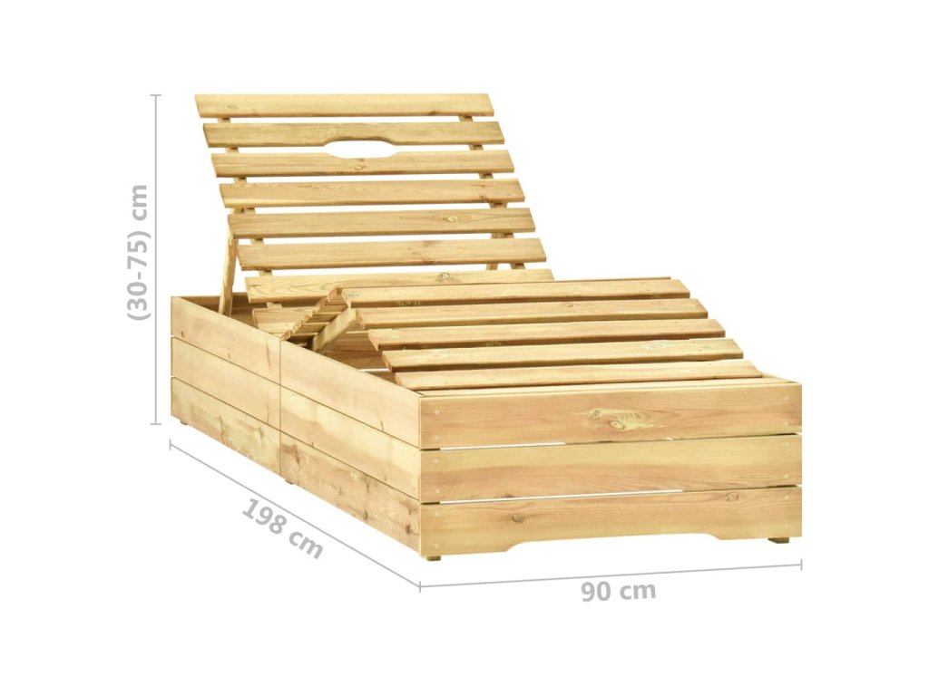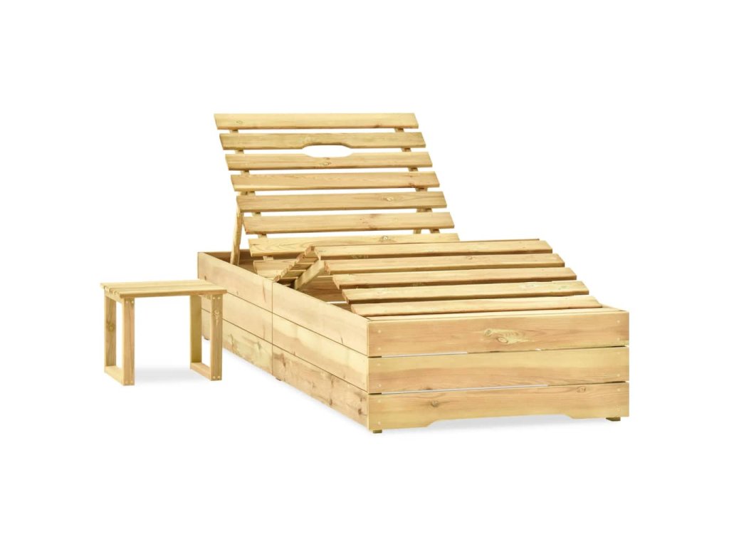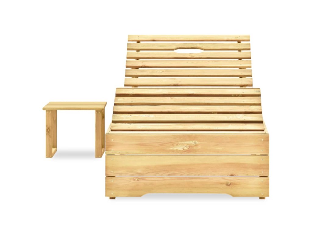 Lehátko je zhotovené z masivní impregnované borovice, takže výborně odolává klimatickým vlivům, má dlouhou životnost a dá se snadno čistit vlhkým hadříkem. Výšku opěradla i opěrky nohou si můžete nastavit dle vlastní potřeby, abyste se mohli co nejpohodlněji uvelebit. Lehátko efektivně kombinuje styl, odolnost a pohodlné používání a vaše venkovní bydlení zkrášlí svým nadčasovým designem. Je doplněné dřevěným stolkem, na který si můžete odkládat vaše telefony, sluneční brýle, nápoje a další drobnosti v dosahu ruky.