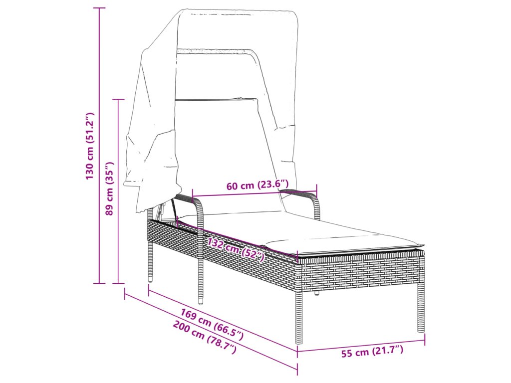 - Rozměry bez stříšky: 60 x 200 x 89 cm (Š x H x V)