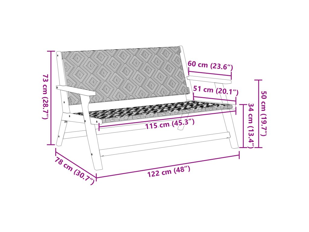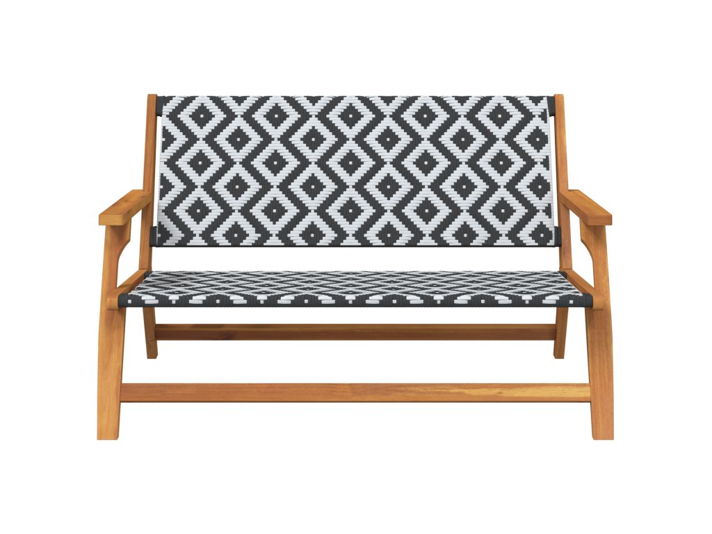 Tahleta zahradní lavice spojuje pohodlí se stylem a je ideální pro relaxaci kdekoli. Poutavý černobílý vzorovaný ratan s masivním akáciovým dřevem přidává elegantní dotek, co vylepšuje terasy, balkony i zahrady a pohodlně pojme dvě osoby.