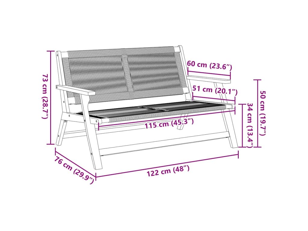 - Stylový design: Moderní a funkční vzhled této lavice, spolu se trendy šedými provázkovými detaily, krásně vynikne ve vašem venkovním prostoru a zajistí pohodlí při relaxaci.