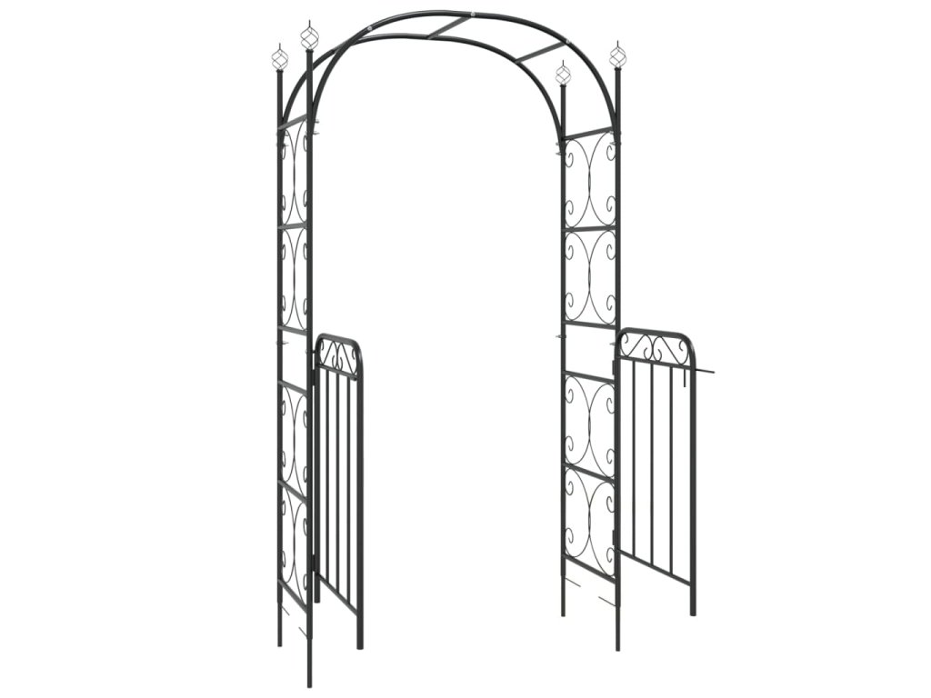 - Design s brankou: Tento zahradní oblouk je vybaven uzamykatelnou brankou, která má rafinovaný vzhled a zároveň vytváří pocit oddělení a soukromí mezi jednotlivými částmi zahrady.