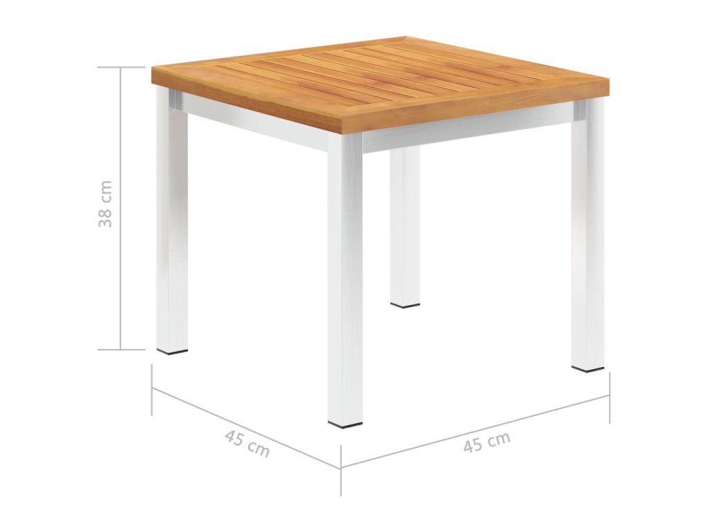 Stolek je vyrobený z masivního akáciového dřeva, které vypadá jako teakové, a vysoce kvalitní nerezové oceli 304. Výborně proto vzdoruje vlivům počasí i rzi a má dlouhou životnost. Olejovaný povrch navíc usnadňuje čištění, takže vám postačí navlhčený hadřík. Odkládací stolek krásně zapadne do každé domácnosti a umožní vám stolovat ve velkém stylu.