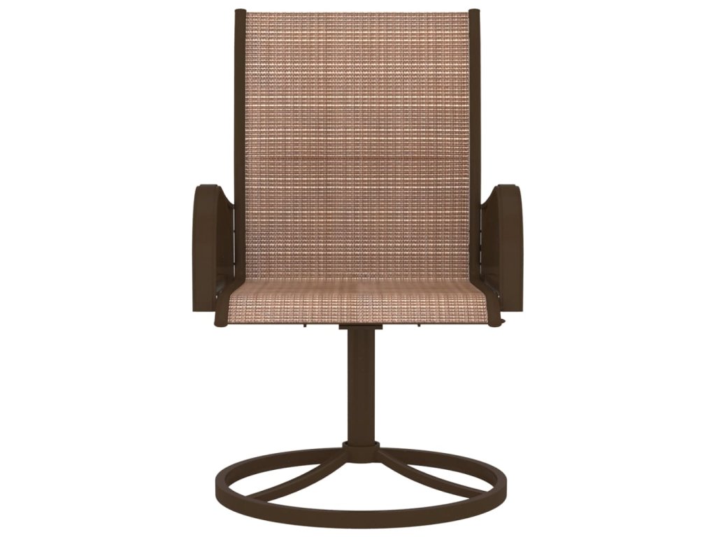 Tyto židle jsou vyrobené z ocelového rámu s práškovým nástřikem a výborně vzdorují korozi a nepříznivému počasí. Prodyšná textilenová tkanina dobře větrá a rychle schne. Kulatá základna otočná o 360 stupňů, ergonomické opěradlo a zakřivené područky vám poskytnou lepší uživatelský zážitek a pohodlí při lenošení.