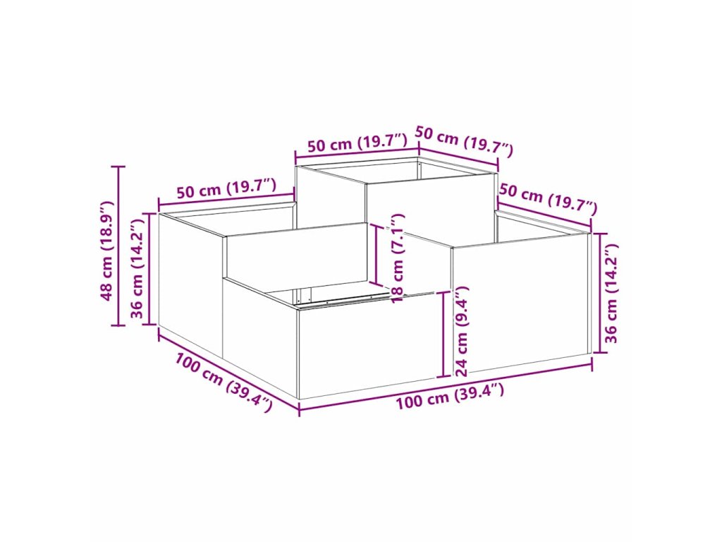 - Celkové rozměry: 100 x 100 x 48 cm (D x Š x V)