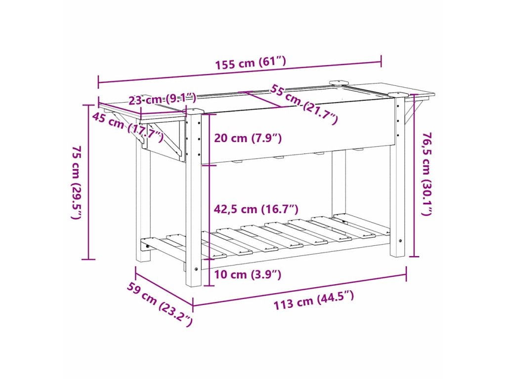 - Velký úložný prostor: Díky robustní polici můžete mít své zahradní náčiní nebo další květináče hned po ruce. Maximálně využije prostor, aniž by narušoval elegantní design. Police vám pomůže efektivně uspořádat vše, co potřebujete, i když máte malou zahradu.