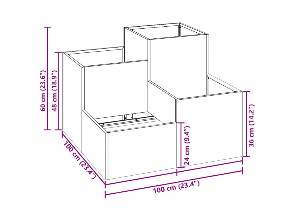 - Celkové rozměry: 100 x 100 x 60 cm (D x Š x V)
