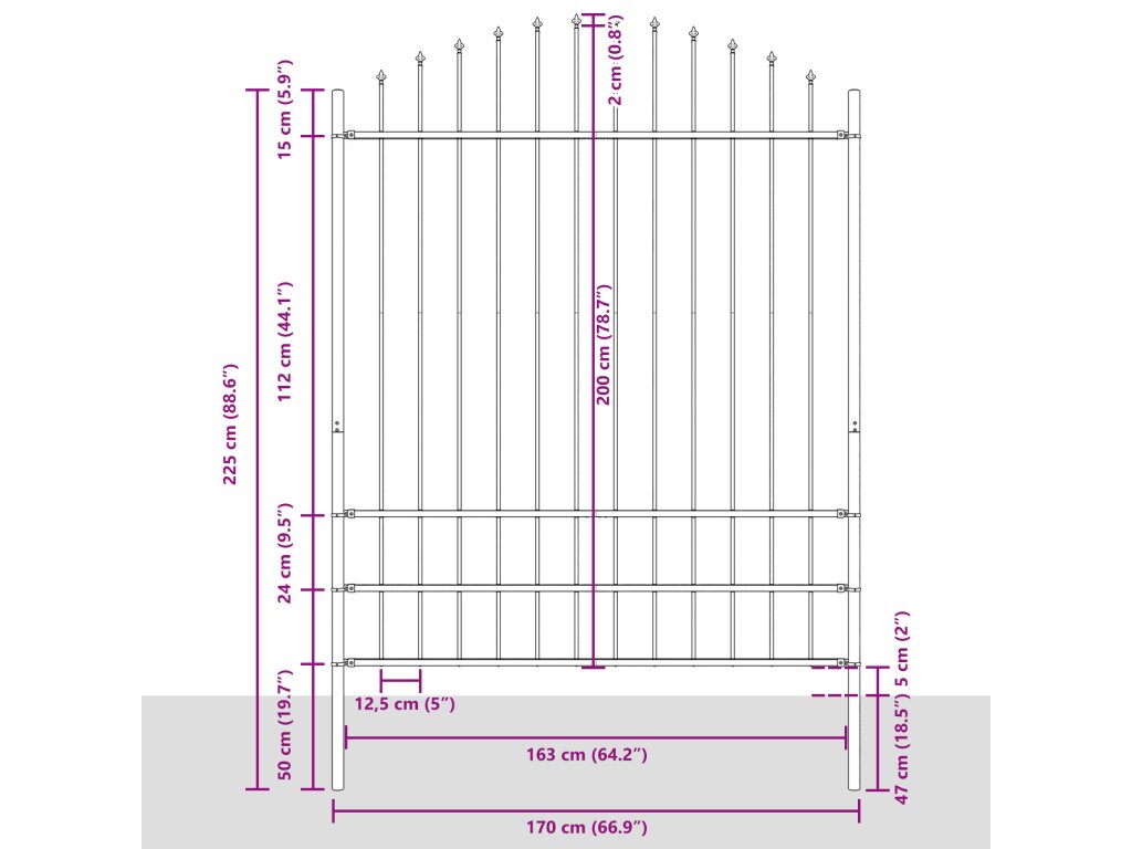 - Odolný materiál: Vyrobeno z trvanlivé práškově lakované oceli, tenhle plot odolává povětrnostním vlivům. Matný povrch nevypadá jen moderně, ale zajišťuje taky dlouhou životnost proti venkovním podmínkám.