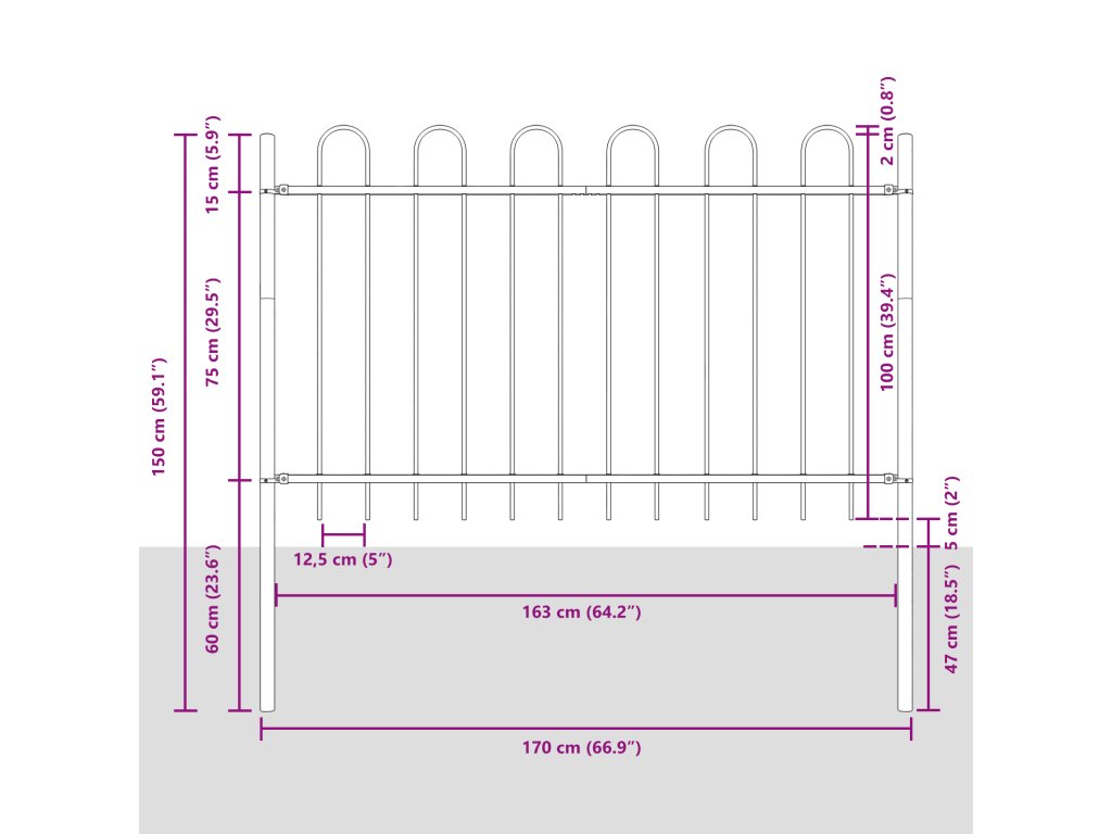 Tento tradiční šedý zahradní plot je super doplněk vašeho venkovního prostoru, co nabízí jak praktičnost, tak styl. Díky svému designu s kruhovým vrcholem vytváří vítající hranici, a přitom je dostatečně odolný pro dlouhodobé venkovní použití.