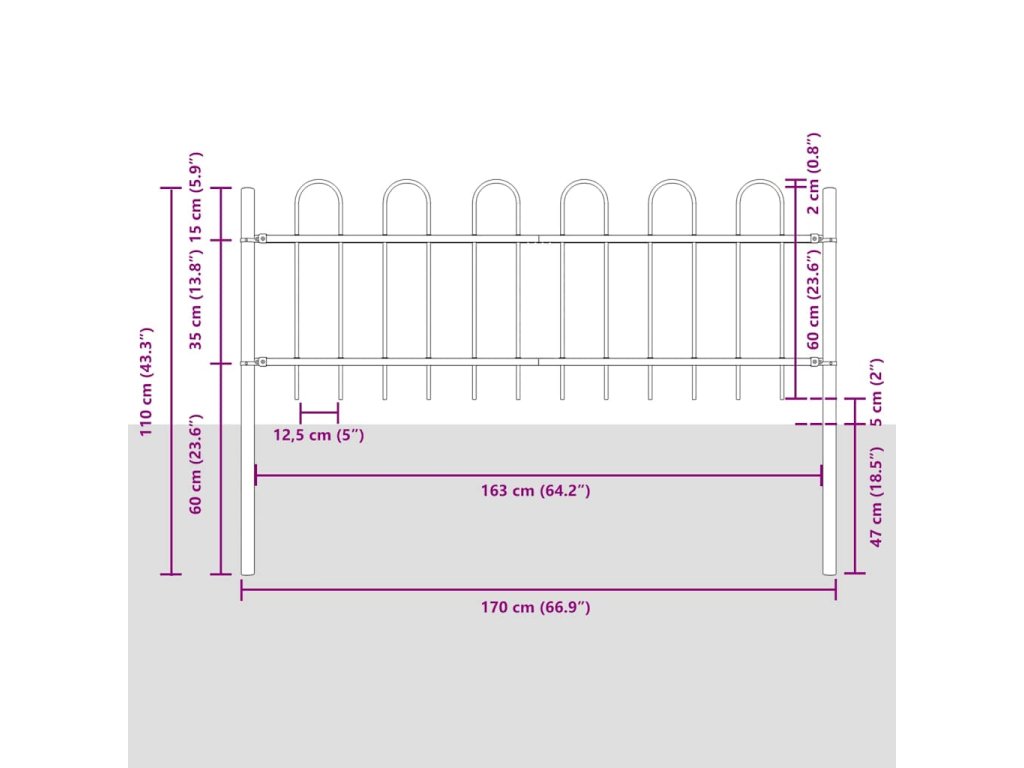 Tenhle zahradní plot vidaXL je skvělý způsob, jak oživit venkovní prostor. Elegantní design kombinuje praktičnost s vzhledem. Je vyrobený z práškově lakované oceli, takže vydrží věky. Křivka nahoře dodává styl, ideální pro vymezení oblastí v zahradě nebo na dvorku.