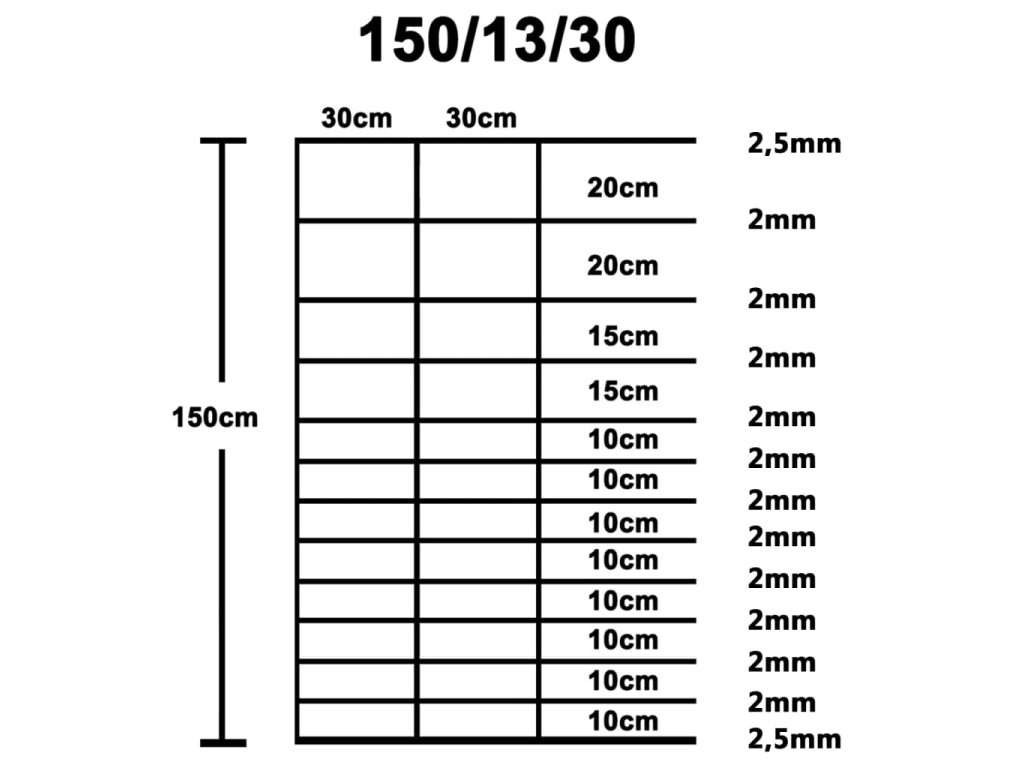 - Vzdálenost vertikálních drátů: 30 cm