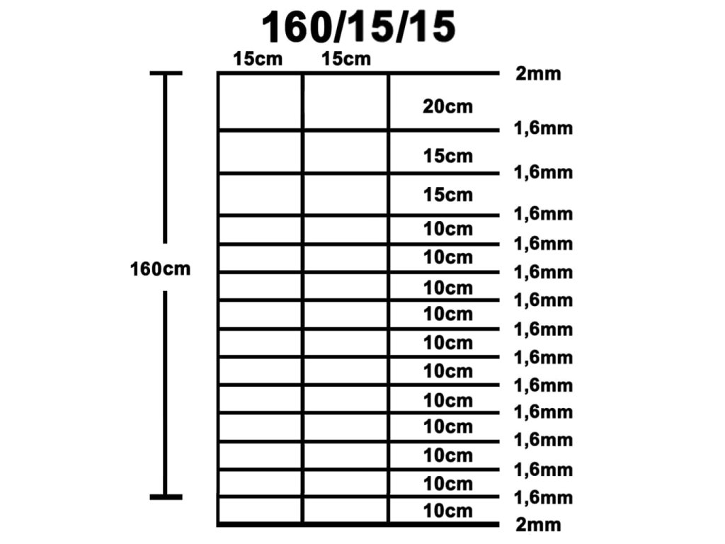 - Průměr horizontálního drátu (horní a spodní): 2 mm