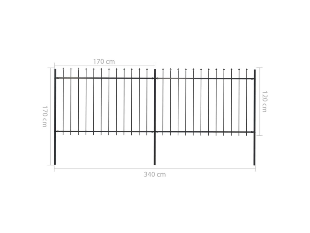 Vytvořte si okolo vaší zahrady, domu nebo příjezdové cesty elegantní oplocení s naším zahradním plotem! Tvoří ho 2 plotové dílce se 3 sloupky a má celkovou délku 3,4 metrů. Umožní vám okolo vaší zahrady, domu, komerčního pozemku nebo výběhu pro zvířata postavit pevnou, robustní bariéru. Jedná se o bezpečný a bezúdržbový dekorativní zahradní plot.