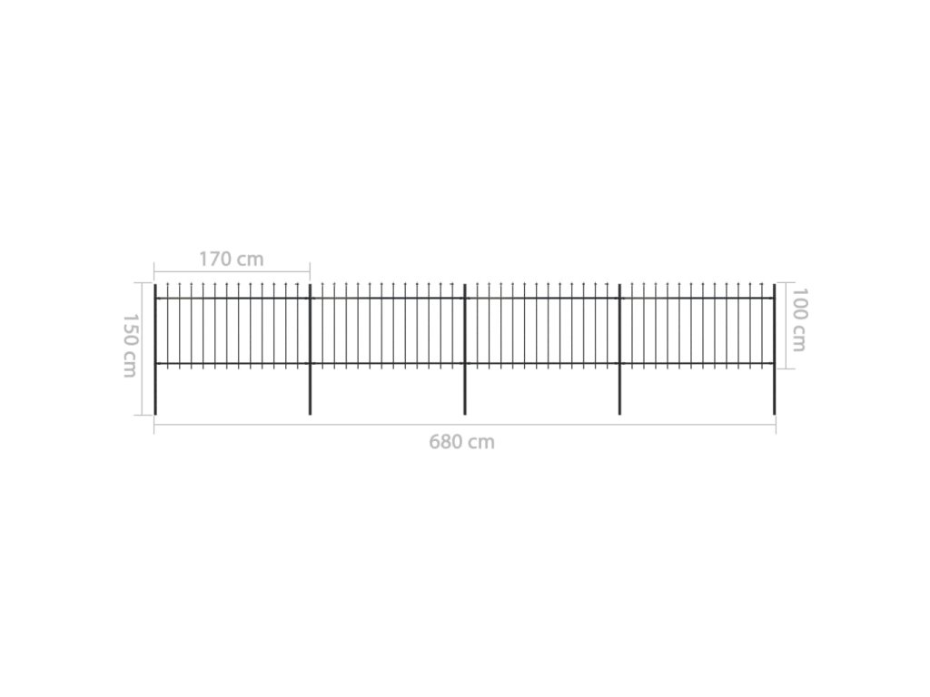 Vytvořte si okolo vaší zahrady, domu nebo příjezdové cesty elegantní oplocení s naším zahradním plotem! Tvoří ho 4 plotové dílce s 5 sloupky a má celkovou délku 6,8 metrů. Umožní vám okolo vaší zahrady, domu, komerčního pozemku nebo výběhu pro zvířata postavit pevnou, robustní bariéru. Jedná se o bezpečný a bezúdržbový dekorativní zahradní plot.