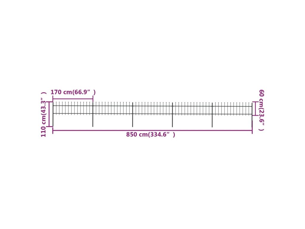 Vytvořte si okolo vaší zahrady, domu nebo příjezdové cesty elegantní oplocení s naším zahradním plotem! Tvoří ho 5 plotových dílců s 6 sloupky a má celkovou délku 8,5 metrů. Umožní vám okolo vaší zahrady, domu, komerčního pozemku nebo výběhu pro zvířata postavit pevnou, robustní bariéru. Jedná se o bezpečný a bezúdržbový dekorativní zahradní plot.