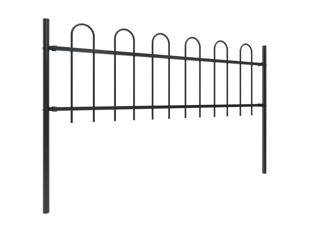 Náš zahradní plot tvoří svislé pruty nahoře zakončené obloučky a pevné vodorovné výztuhy, které rám zpevňují. Poskytuje vysokou míru zabezpečení. Plot, zhotovený z vysoce odolné oceli ošetřené práškováním, je výjimečně stabilní, pevný a dlouhodobě odolný. Jeho sestavení je snadné, veškerý montážní materiál je totiž součástí balení.