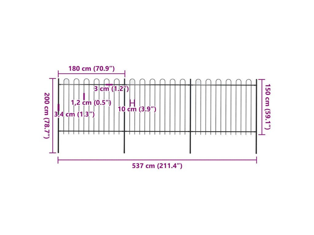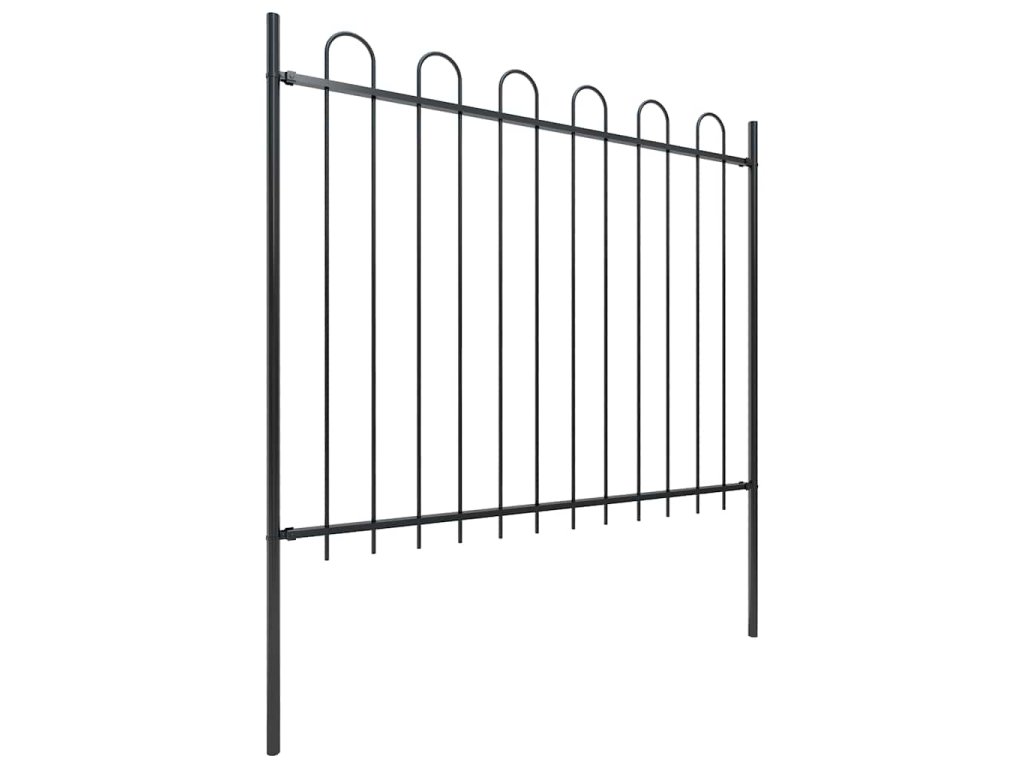Náš zahradní plot tvoří svislé pruty nahoře zakončené obloučky a pevné vodorovné výztuhy, které rám zpevňují. Poskytuje vysokou míru zabezpečení. Plot, zhotovený z vysoce odolné oceli ošetřené práškováním, je výjimečně stabilní, pevný a dlouhodobě odolný. Jeho sestavení je snadné, veškerý montážní materiál je totiž součástí balení.