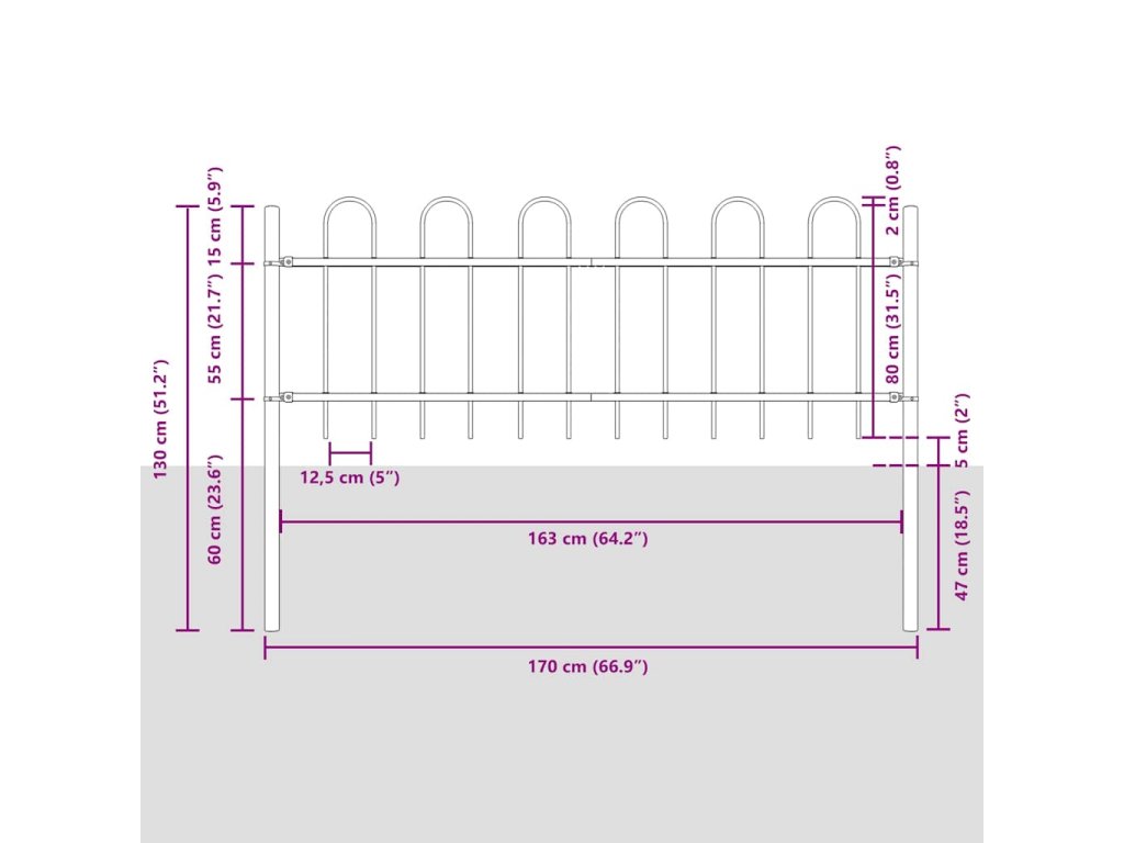 Tenhle zahradní plot vidaXL je super volba, jak oživit tvůj venkovní prostor. Díky svému hezkému designu spojuje funkčnost a styl. Práškově lakovaná ocel zajišťuje odolnost, zatímco vršek přidává trochu elegance, což z něj dělá ideální pro vymezení hranic v zahradách nebo dvorech.