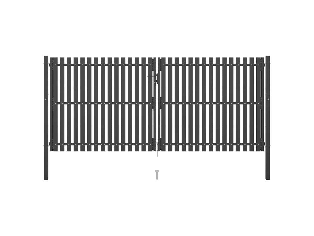 Naše zahradní brána s vyztuženým plochým trubkovým rámem poskytuje velmi vysoký stupeň zabezpečení a zároveň je báječným vchodem na váš pozemek. Ve středu brány je zemní zarážka pro extra zpevnění. Brána je vyrobená z velmi odolné oceli s práškovým lakováním jako ochrana proti rzi a korozi. Tato vstupní brána je vybavená systémem uzamčení a dodává se s dvěma masivní sloupky, včetně robustních pantů pro snadnou instalaci.