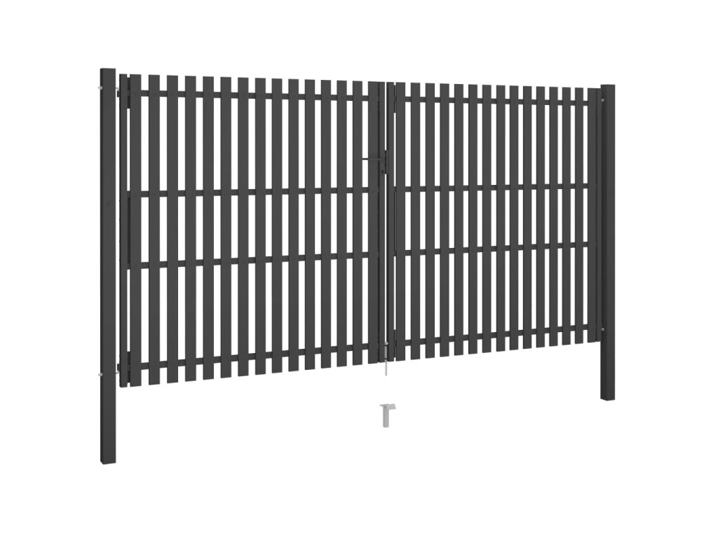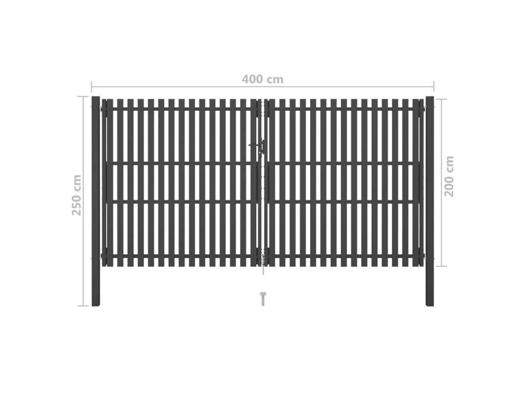 Naše zahradní brána s vyztuženým plochým trubkovým rámem poskytuje velmi vysoký stupeň zabezpečení a zároveň je báječným vchodem na váš pozemek. Ve středu brány je zemní zarážka pro extra zpevnění. Brána je vyrobená z velmi odolné oceli s práškovým lakováním jako ochrana proti rzi a korozi. Tato vstupní brána je vybavená systémem uzamčení a dodává se s dvěma masivní sloupky, včetně robustních pantů pro snadnou instalaci.