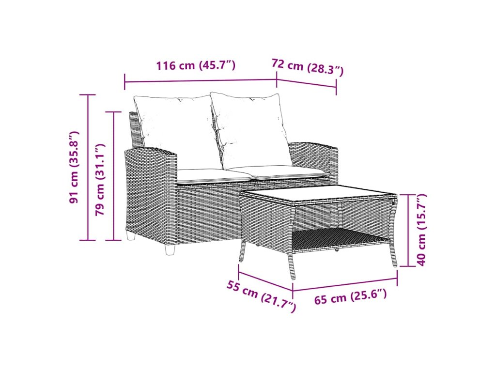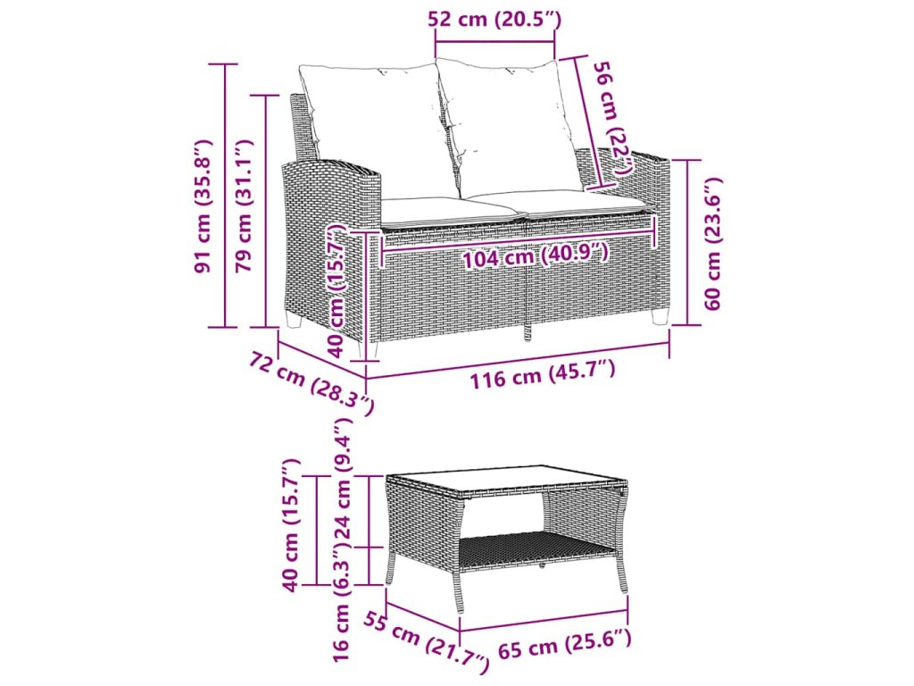 - Robustní a stabilní rám: Ocelový rám s práškovým nástřikem zajišťuje, že zahradní nábytek je pevný a stabilní pro každodenní venkovní použití.