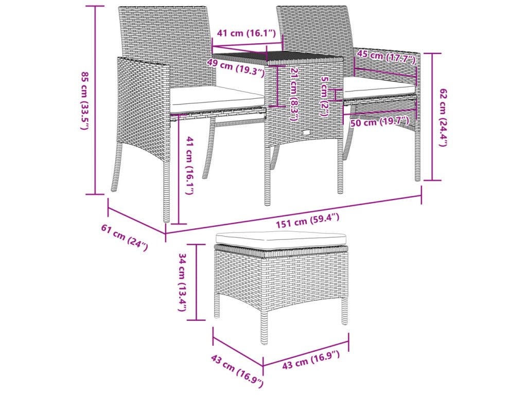- Robustní a stabilní rám: Ocelový rám s práškovým nástřikem zajišťuje, že zahradní nábytek je pevný a stabilní pro každodenní venkovní použití.