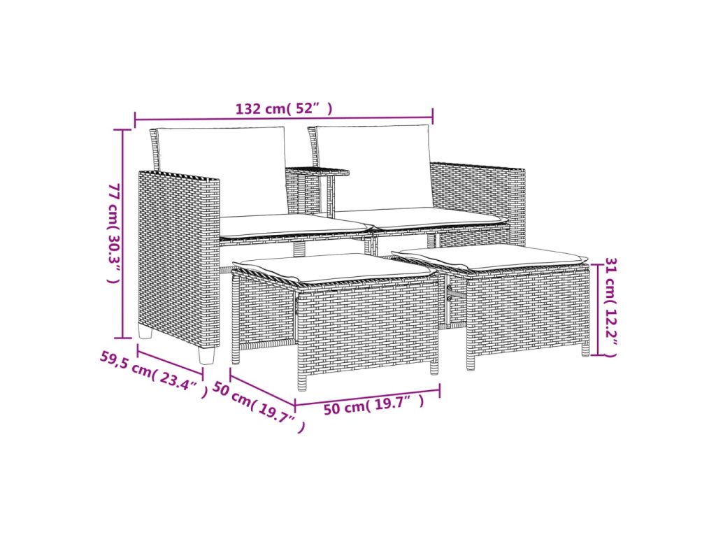 - Pohodlný středový stolek: Tento venkovní nábytek je vybaven integrovaným středovým stolkem, který vám poskytne praktické místo, kam si můžete odložit vaše nezbytnosti a mít je na dosah ruky.