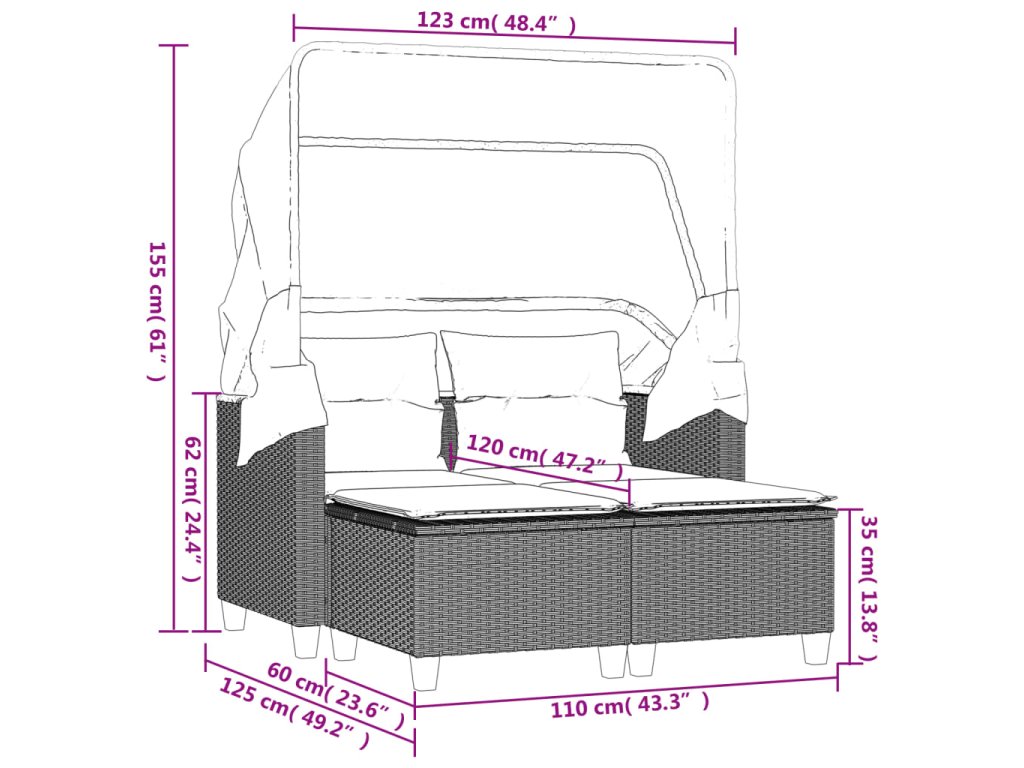 Odpočívejte a užívejte si venku na této pohodlné zahradní pohovce se stříškou a taburety!
