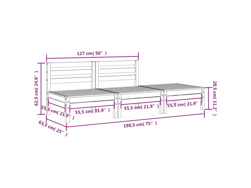 - Celkové rozměry: 190,5 x 63,5 x 62,5 cm (Š x H x V)