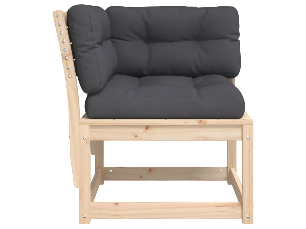 - Masivní borové dřevo: Masivní borové dřevo je krásný přírodní materiál. Borové dřevo má rovnou kresbu a obsahuje suky, které materiálu dodávají jeho charakteristický, rustikální vzhled. Tato rohová pohovka je zhotovená z masivního borového dřeva, je tedy odolná a stabilní.
