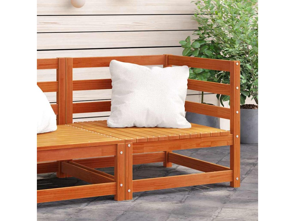 - Lamelový design: Lamelová konstrukce venkovní pohovky účinně zabraňuje hromadění vody a zajišťuje tak, že sedák zůstane suchý a chráněný proti případné hnilobě.