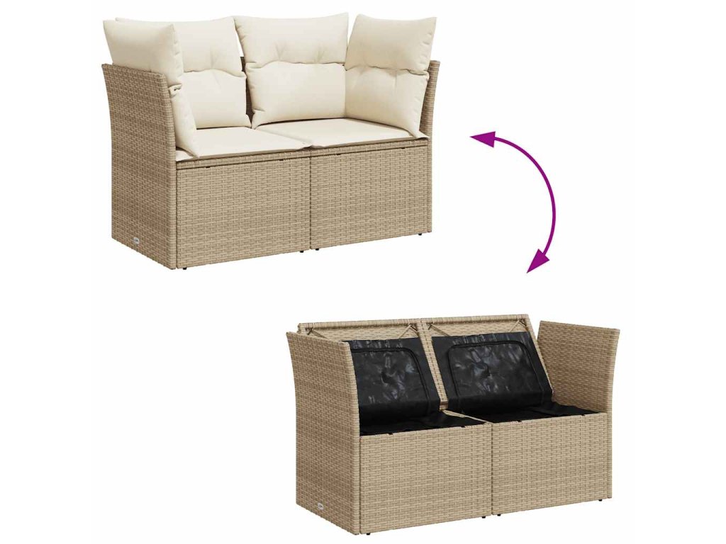 - Úložný prostor s voděodolným vakem: Každý zahradní sedací díl má úložný prostor pod sedákem, který je opatřen voděodolnou vložkou a poslouží vám k ukládání podušek, hraček a dalších věcí. Vnitřní vaky mají horní kryt a lze je bezpečně připevnit k sedákům pomocí suchého zipu, což zaručí větší stabilitu.
