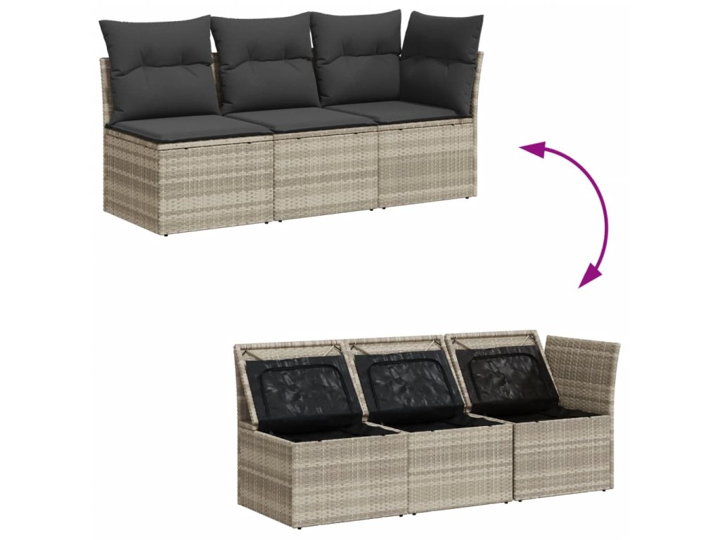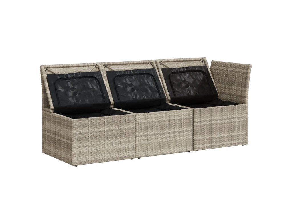 - Úložný prostor s voděodolným vakem: Každý zahradní sedací díl má úložný prostor pod sedákem, který je opatřen voděodolnou vložkou a poslouží vám k ukládání podušek, hraček a dalších věcí. Vnitřní vaky mají horní kryt a lze je bezpečně připevnit k sedákům pomocí suchého zipu, což zaručí větší stabilitu.