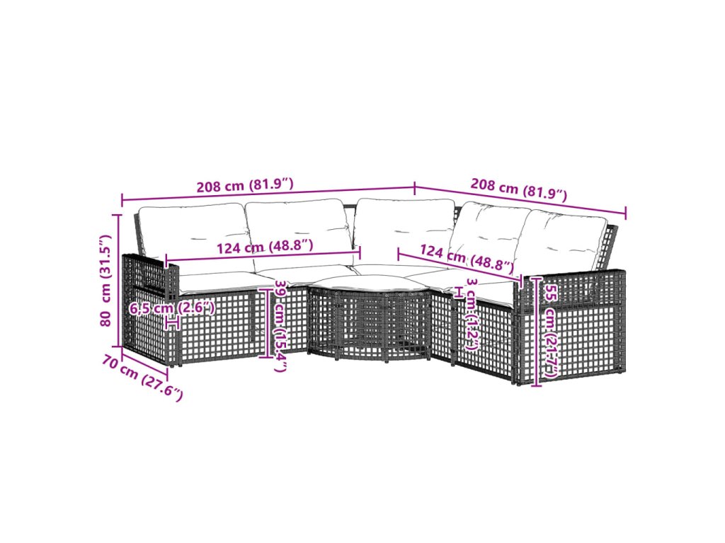 - Rozměry: 208 x 208 x 80 cm (Š x H x T)