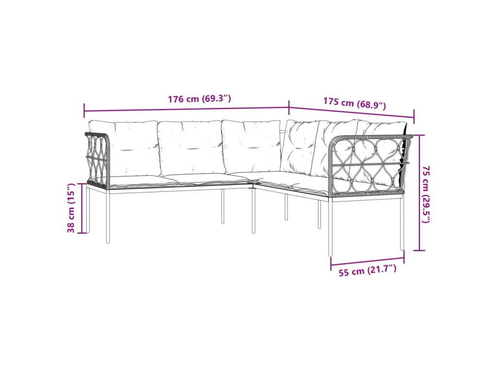 Tato zahradní pohovka ve tvaru písmene L je dokonalým doplňkem vaší zahrady, terasy nebo dvorku a poskytne vám pohodlné a příjemné místo, kde si můžete povídat s rodinou a přáteli nebo jen tak odpočívat a užívat si pobyt venku.