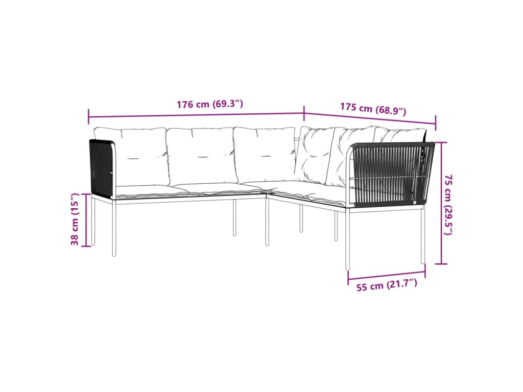 Tato zahradní pohovka ve tvaru písmene L je dokonalým doplňkem vaší zahrady, terasy nebo dvorku a poskytne vám pohodlné a příjemné místo, kde si můžete povídat s rodinou a přáteli nebo jen tak odpočívat a užívat si pobyt venku.