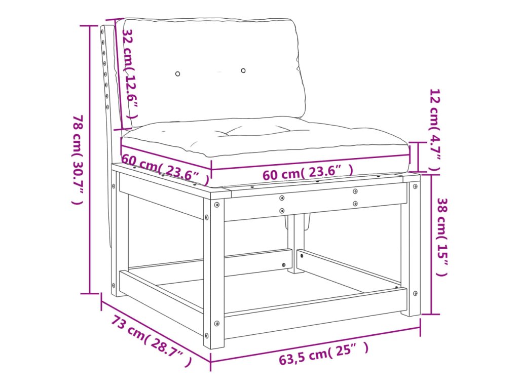 - Rozměry pohovky bez područek: 63,5 x 73 x 78 cm (Š x H x V)