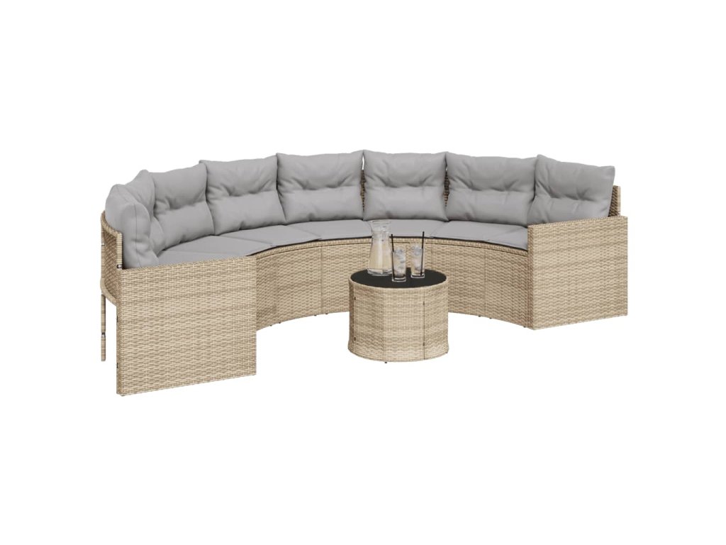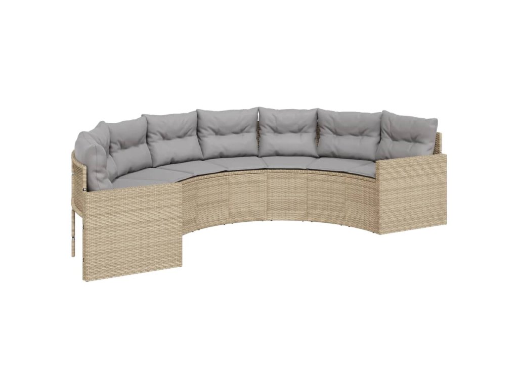 Tato půlkruhová zahradní sedací souprava je dokonalým doplňkem vaší zahrady, terasy nebo dvorku a poskytne vám pohodlné a příjemné místo, kde si můžete povídat s rodinou a přáteli nebo jen tak odpočívat a užívat si pobyt venku.