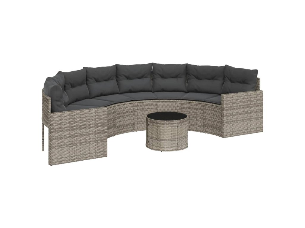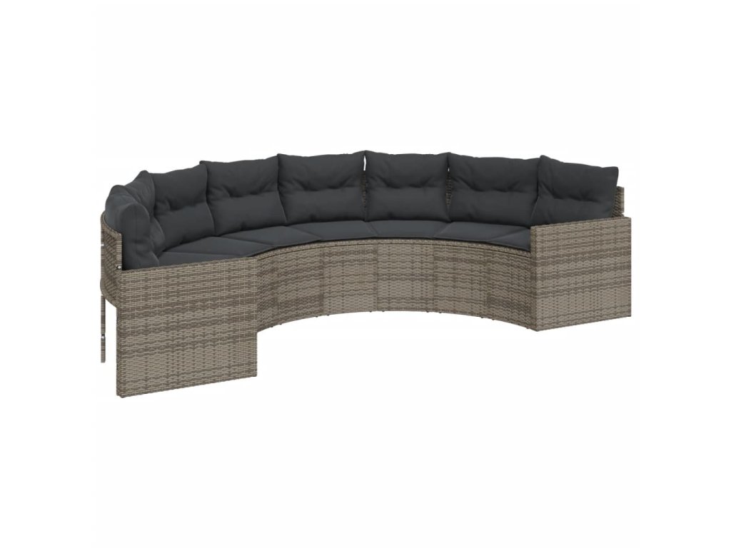 Tato půlkruhová zahradní sedací souprava je dokonalým doplňkem vaší zahrady, terasy nebo dvorku a poskytne vám pohodlné a příjemné místo, kde si můžete povídat s rodinou a přáteli nebo jen tak odpočívat a užívat si pobyt venku.