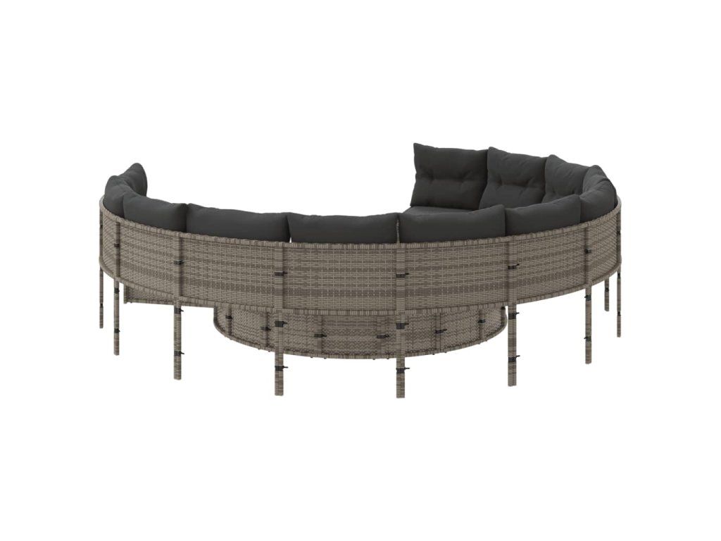 Tato zahradní pohovka kulatého tvaru je dokonalým doplňkem vaší zahrady, terasy nebo dvorku a poskytne vám pohodlné a příjemné místo, kde si můžete povídat s rodinou a přáteli nebo jen tak odpočívat a užívat si pobyt venku.