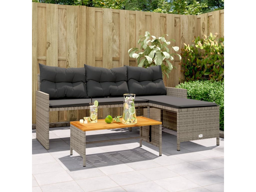 Tato zahradní pohovka ve tvaru písmene L je dokonalým doplňkem vaší zahrady, terasy nebo dvorku a poskytne vám pohodlné a příjemné místo, kde si můžete povídat s rodinou a přáteli nebo jen tak odpočívat a užívat si pobyt venku.