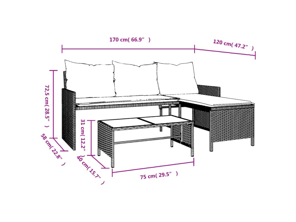 Tato zahradní pohovka ve tvaru písmene L je dokonalým doplňkem vaší zahrady, terasy nebo dvorku a poskytne vám pohodlné a příjemné místo, kde si můžete povídat s rodinou a přáteli nebo jen tak odpočívat a užívat si pobyt venku.