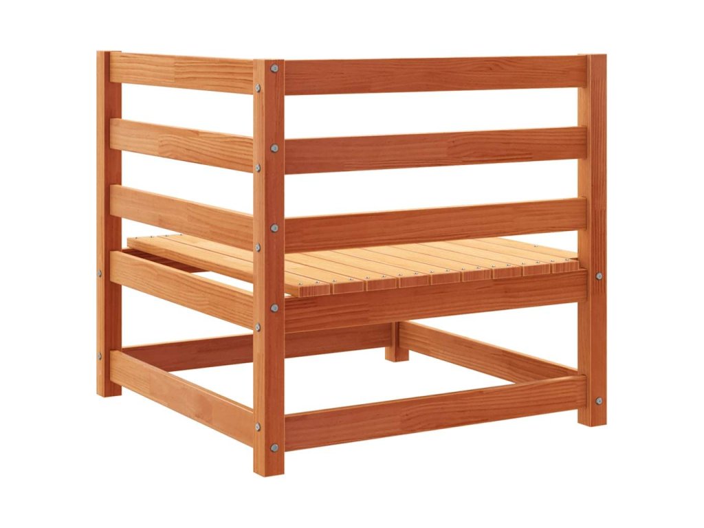 - Lamelový design: Lamelová konstrukce venkovní pohovky účinně zabraňuje hromadění vody a zajišťuje tak, že sedák zůstane suchý a chráněný proti případné hnilobě.