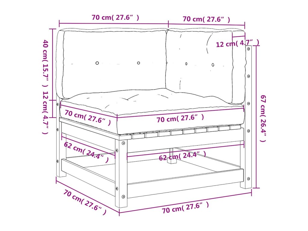 - Rozměry podušky na sedák: 70 x 70 x 12 cm (D x Š x T)