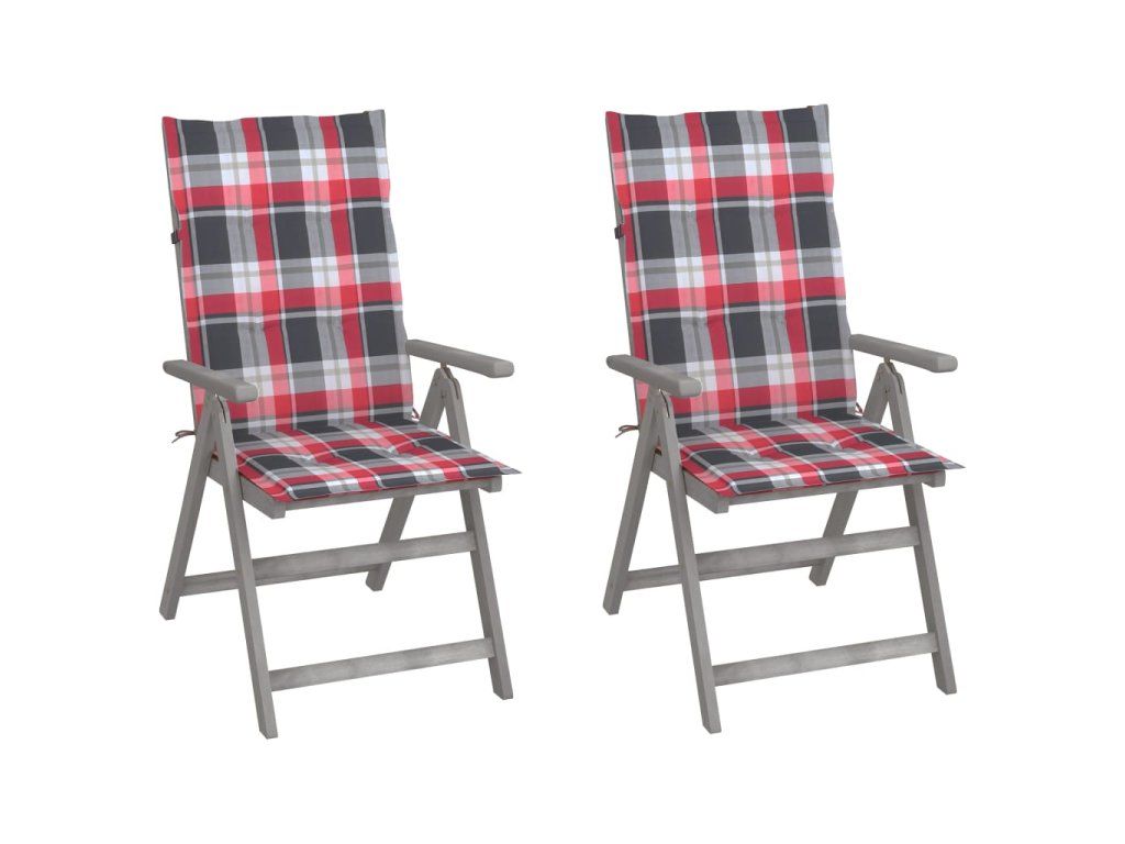Křesla jsou vyrobená z masivního akáciového dřeva s šedou povrchovou úpravou. Akácie je tvrdé dřevo s hustou kresbou. Zahradní židle mají překrásný design, jsou stabilní, hodně toho vydrží a vypadají velice atraktivně. Opěradla židlí lze nastavit do 5 poloh, takže si vždy najdete tu nejpohodlnější, která vám zrovna vyhovuje. Podušky vám při odpočinku zajistí mimořádné pohodlí. Jsou vyrobené ze 100% polyesteru s voděodolnou povrchovou úpravou a každá z nich je opatřená elastickou gumičkou a 2 páry šňůrek, za které ji můžete pevně přivázat k židli.