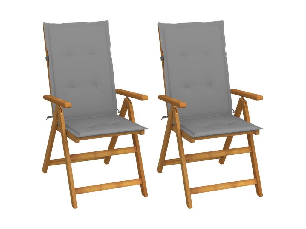 Zahradní židle jsou vyrobené z masivní akácie napuštěné olejem. Jedná se o tvrdé dřevo s hustou kresbou, které dokáže unést značnou váhu, výborně odolává působení času a neopotřebovává se. Vzhledem k olejem ošetřenému povrchu lze židle snadno očistit navlhčeným hadříkem. Jejich opěradla je navíc možné nastavit do 5 různých poloh, abyste si mohli vždycky najít tu, která je pro vás nejpohodlnější. Součástí balení jsou také podušky pro pohodlnější stolování či odpočinek. Každá poduška je opatřená elastickým popruhem a dvěma páry šňůrek, za které ji spolehlivě připevníte k židli.